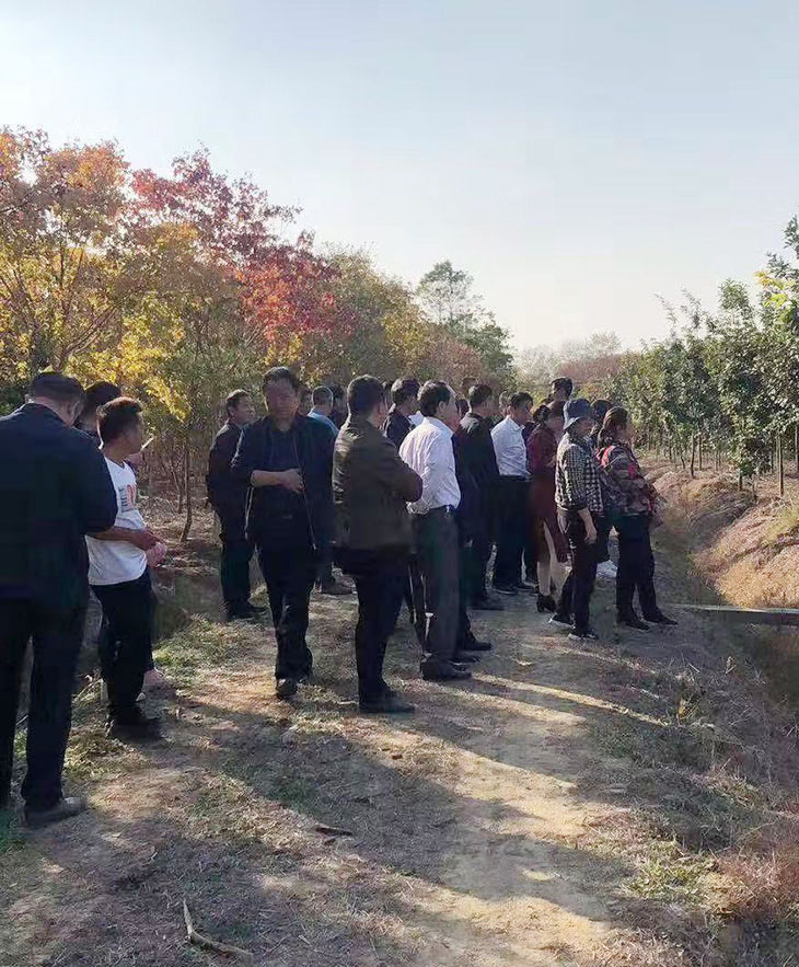 南京浦口区领导和苗木企业及专家在郑站的带领下来我公司银缕梅基地考察指导,并共同探讨彩叶濒危银缕梅苗木的种植及前景!