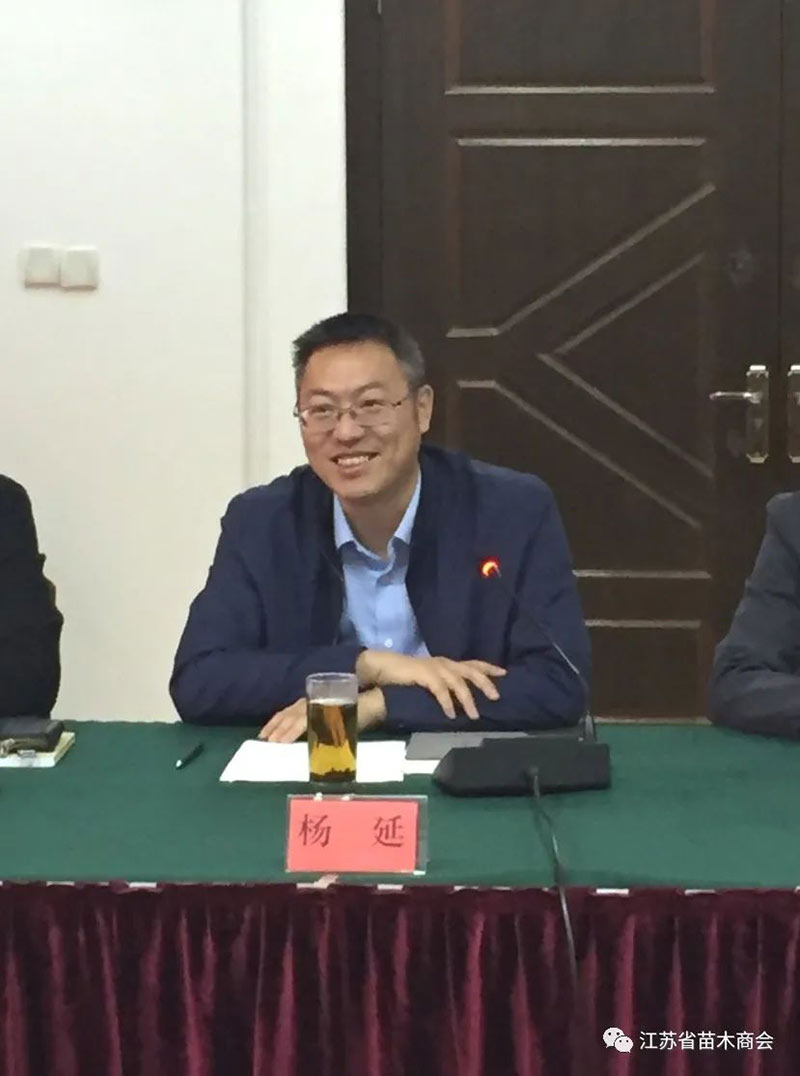 宜兴市人民政府副市长杨延讲话。他认为,银缕梅作为植物界的大熊猫,期待在省植物研究所的指导下,开展项目申报、种子繁育、树种利用等合作,为保护开发珍贵树种做出应有的努力。